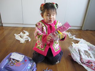 She really knows how to tear into presents! She is going to have so much fun here next Christmas.